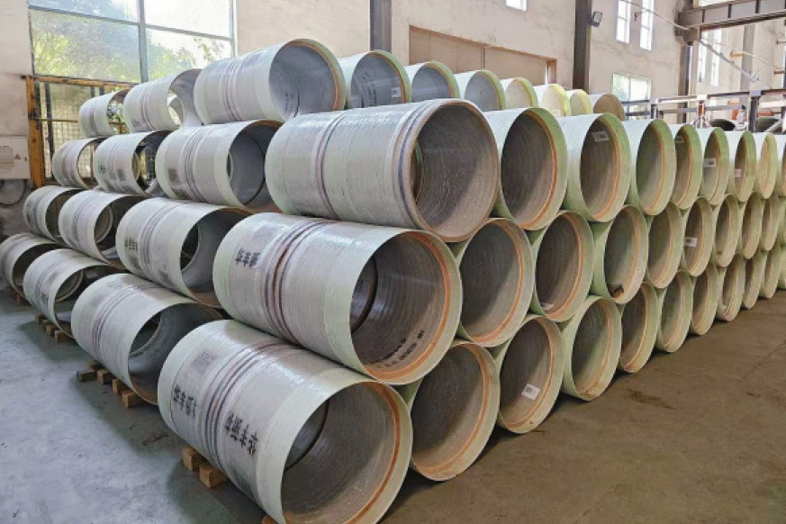 置换⽤连续缠绕玻璃纤维增强塑料顶管(简称:置换顶管)是以液体热固性树脂为基体材料,以⾼模量玻璃纤维为增强材料,通过连续纤维环向增强、短切纤维三维增强的⽅式,基于物联⽹的连续缠绕玻璃钢管道制造系统,融合了复合材料、现代传感、信息⽹络、⾃动化等新技术制成具有三维增强结构的新型复合材料置换专⽤顶管。